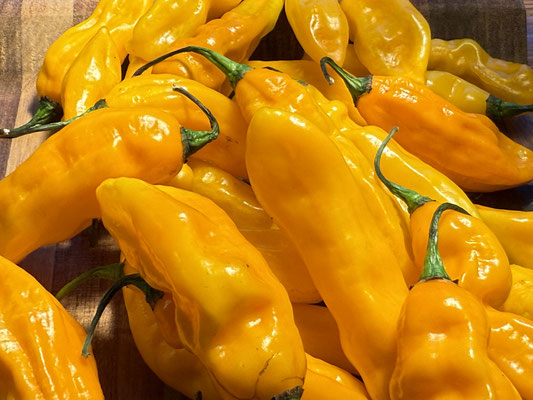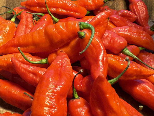 Geschmack: Fruchtig-exotisch mit Noten von Mango, Papaya und Zitrusfrüchten – Manche beschreiben ihren Geschmack sogar als floral, was sie von anderen scharfen Chilis deutlich abhebt.